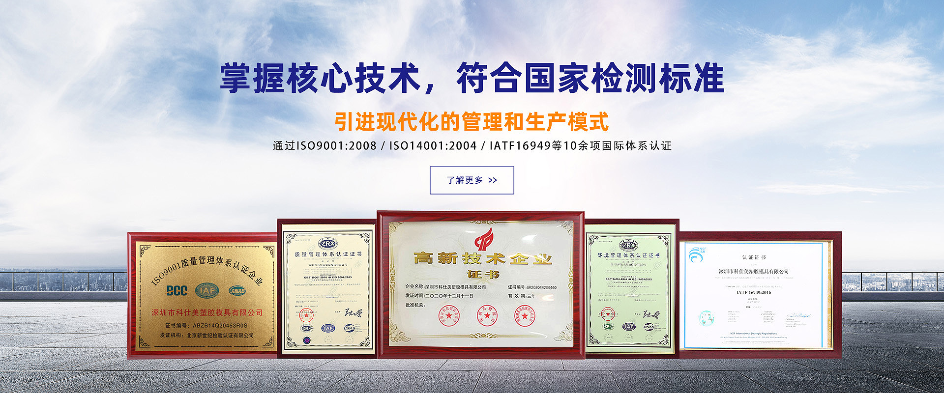 科仕美成立于2006年,是一家國(guó)家級(jí)高新技術(shù)企業(yè),截止目前已經(jīng)從事模具塑膠注塑行業(yè)17年,集專業(yè)雙色、多色塑膠模具設(shè)計(jì)、制造與注塑生產(chǎn)成型為一體科技型企業(yè),引進(jìn)現(xiàn)代化的管理和生產(chǎn)模式,通過(guò)并持續(xù)完善ISO9001:2008 / ISO14001:2004 / IATF16949國(guó)際體系認(rèn)證。擁有完善的品質(zhì)保證和服務(wù)體系。
